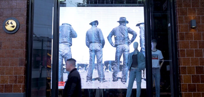 Market Street (San Francisco) jest jedną z najbardziej ruchliwych ulic w północnej Kalifornii. Takie środowisko naturalnie wymusza na sklepach temu ulica obfituje w firmy, które muszą wyróżniać się w metodach marchandisingu stale wprowadzając nowości i innowacyjne metody zwracania na siebie uwagi. Jedną z takich firm jest Levi Strauss produkująca kultowe już jeansy. Firma postanowiła zainstalować w swoich witrynach 2 duże ekrany LED, oferujące bardzo wysoką jasność. Ze względu na potrzebę pozostawienia witryny jako naturalnego źródła światła, klient zdecydował się na przezroczyste panale LED które przepuszczają od 65-76% promieni słonecznych. Senior Account Manager Brandie Perkins zaznacza, że dzięki usunięciu standardowych backlightów I zastąpieniu ich technologią DS mogą swobodnie ratować filmami lub wyświetlać grafiki naturalnie zwracające uwagę przechodniów