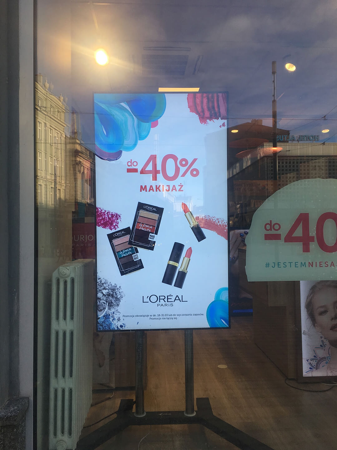 Ekran, który ma być widoczny i ma wyróżniać się w witrynie galerii handlowej powinien osiągać jasność od 400-1000cd..